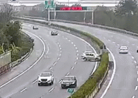 △白色面包車因錯過路口直接在快車道上停車,導(dǎo)致4車相撞。