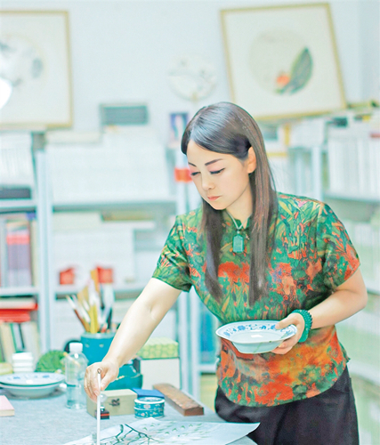 記者:除了詩歌和國畫,您還涉足了石頭畫、皮雕、裝飾畫等多種藝術(shù)形式。想了解一下您平時(shí)繪畫通常的尺寸?您認(rèn)為您的優(yōu)勢在哪里?弱點(diǎn)是什么,如何克服?