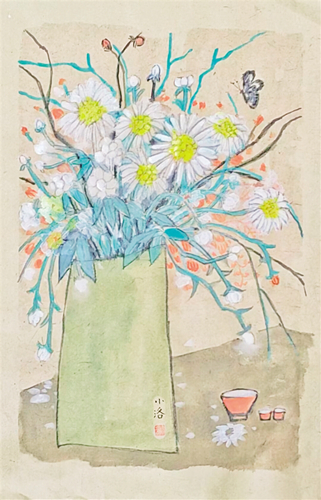 李小洛:宣紙、石頭、木頭、瓦片、皮革都曾作為我的繪畫材料。宣紙上的繪畫,由大到小,從最早的四尺整張、斗方,到現(xiàn)在的一平尺左右或者更小,包括一些小冊頁、枕邊書,都極其可愛。優(yōu)勢可能是詩意以及比較嚴(yán)苛的訓(xùn)練。詩意包括童心和趣味性,把自己需要的喜歡的以及感覺放進(jìn)畫里去,強(qiáng)調(diào)表現(xiàn)個(gè)性,色彩呈現(xiàn),講究借物抒情,追求神韻意趣。只要拿起筆畫畫,就要對自己線條、筆墨、結(jié)構(gòu)有一個(gè)嚴(yán)格的要求和自己不一樣的想法。在似乎極盡嚴(yán)苛的“視覺樣式”和“圖像法則”訓(xùn)練中,找尋一種接近“自覺”的敏銳“感悟”,以及一種單純而鮮活的生命意識。弱點(diǎn)是對繪畫理論缺乏系統(tǒng)研究,今后會(huì)在這方面有意識強(qiáng)化學(xué)習(xí)、掌握。