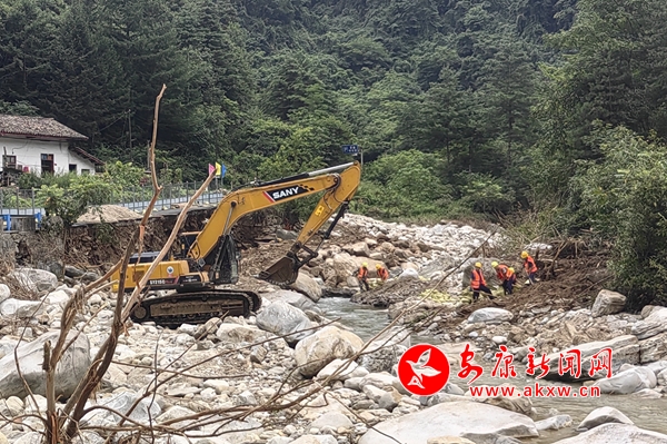 7月31日,沿G210寧陜段一路走來,損毀路段搶修正有序進行。路況雖偶有顛簸,但通行順利。尤其是此次洪水襲擊最嚴重的K1456+900中醫(yī)院、K1448+400寨溝路段,機械作業(yè)來往不停,“一天一個樣”。