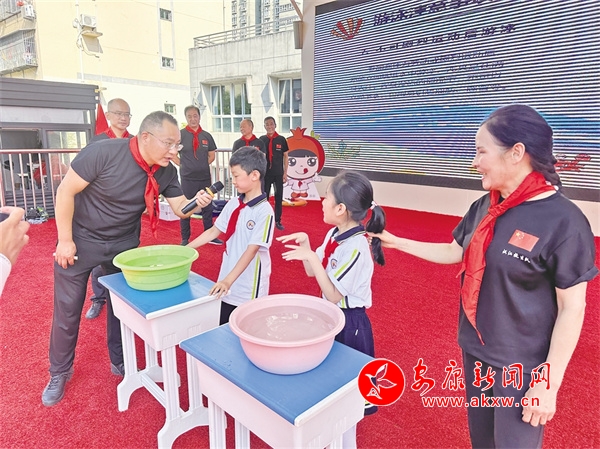 救生隊(duì)員為中小學(xué)生普及游泳自救知識(shí)