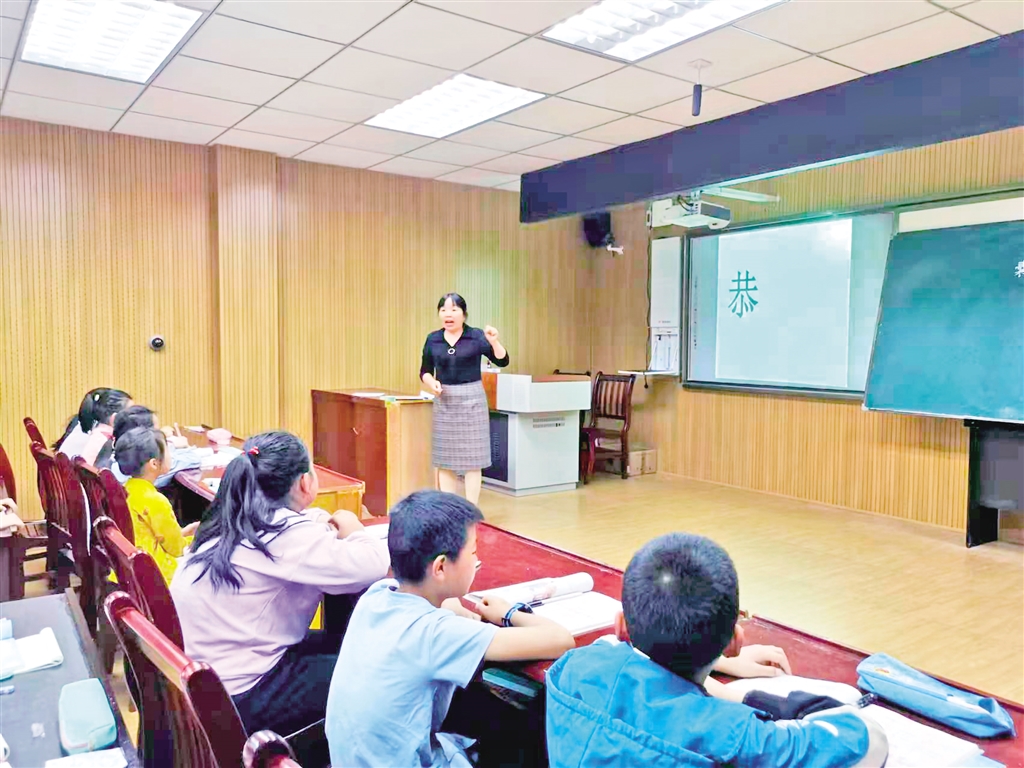 張遠琴帶領(lǐng)學(xué)生學(xué)習(xí)傳統(tǒng)文化
