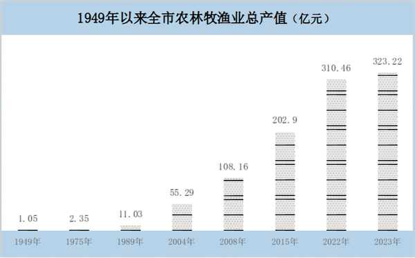 農(nóng)民生活日益豐裕。新中國成立以來,全市不斷加大農(nóng)村水、電、路建設(shè)的投入力度,加快農(nóng)村文化、教育、醫(yī)療等基本公共服務(wù)設(shè)施建設(shè),“千村萬戶”工程進(jìn)農(nóng)村,79.9萬建檔立卡貧困人口全部脫貧,992個(gè)貧困村全部出列,10個(gè)貧困縣區(qū)全部摘帽,如期實(shí)現(xiàn)全域脫貧,鄉(xiāng)村振興戰(zhàn)略成效明顯。農(nóng)村居民人均可支配收入大幅增加,從1978年的161元增加到2023年的14403元,增長近90倍,年均增長10.5%,2023年增長7.7%,高于城鎮(zhèn)居民人均可支配收入2.5個(gè)百分點(diǎn)。城鄉(xiāng)收入差距持續(xù)縮小,由2002年的3.74︰1縮小至2023年2.34︰1,共同富裕的幸福安康進(jìn)一步邁進(jìn)。