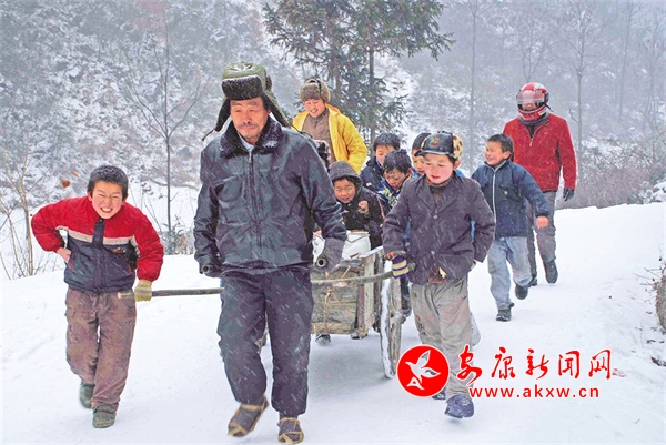 2007年冬天,學(xué)校水管上凍,師生齊力運(yùn)水確保廚房用水。