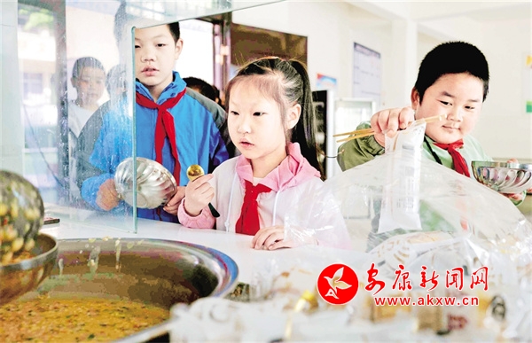 2024年,學(xué)生在新建的餐廳排隊(duì)吃早餐。