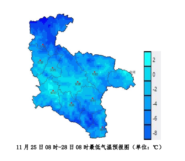 本網(wǎng)訊 11月22日9時,安康市氣象臺發(fā)布《重要天氣報告》,根據(jù)最新氣象觀測資料和數(shù)值模式分析,預計11月23—24日我市有小雨,南部局地中雨,其中24日夜間至25日清晨高山地區(qū)部分地方有雨夾雪或小到中雪,最大積雪深度2~5cm。受較強冷空氣和輻射降溫影響,25—27日最低氣溫下降顯著,預計日最低氣溫出現(xiàn)在11月27日清晨,川道地區(qū)-3~1℃,高山地區(qū)-8~-3℃。25—27日我市有3~4級吹風天氣,陣風6級以上。