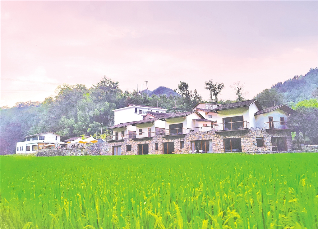 8月7日傍晚,在寧陜縣城關鎮(zhèn)漁灣逸谷田園綜合體,自然美景與現(xiàn)代化民宿相得益彰,構成了一道亮麗的風景線。 王輝 攝