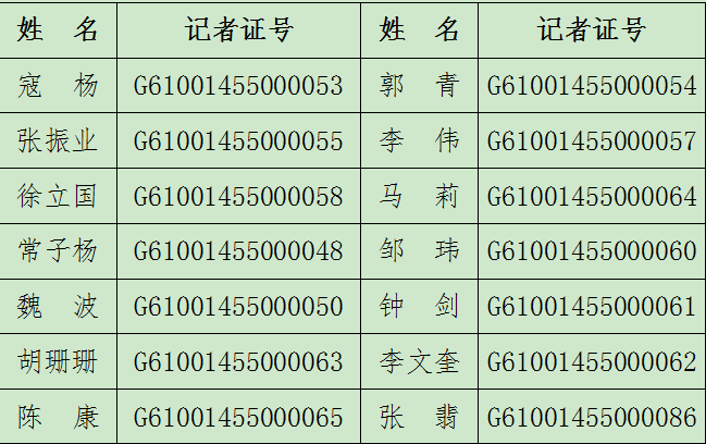為進一步規(guī)范新聞采訪秩序,堅決打擊假記者、假媒體、假記者站、假網(wǎng)站和新聞敲詐行為,維護新聞媒體權(quán)威和新聞記者權(quán)益,為加快建設(shè)西北生態(tài)經(jīng)濟強市營造良好輿論環(huán)境,現(xiàn)將經(jīng)省委網(wǎng)信辦、省新聞出版廣電局批準設(shè)立的省級媒體駐安康記者站、省級新聞網(wǎng)站安康頻道、市級新聞單位及持證記者名單予以公布。
