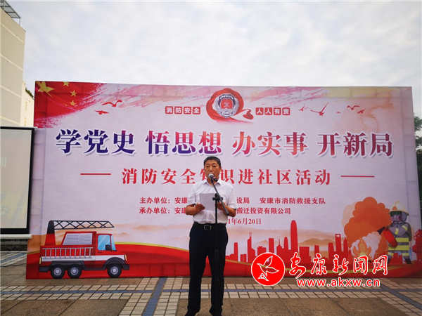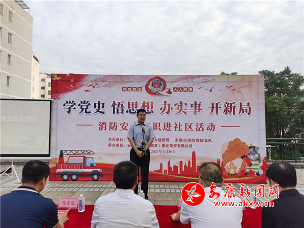 本網(wǎng)訊(通訊員 向橋)6月20日,“學(xué)黨史 悟思想 辦實(shí)事 開新局,消防安全知識(shí)進(jìn)社區(qū)”宣講活動(dòng)啟動(dòng)儀式在山水上城小區(qū)啟動(dòng)。市住建局(市人防辦)副局長(副主任)段平安出席會(huì)議并講話,市移民搬遷公司副總經(jīng)理宋國卿致辭,市消防救援支隊(duì)、市移民搬遷公司和社區(qū)、小區(qū)居民60余人參加活動(dòng)。CqZ安康新聞網(wǎng)