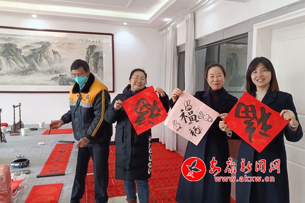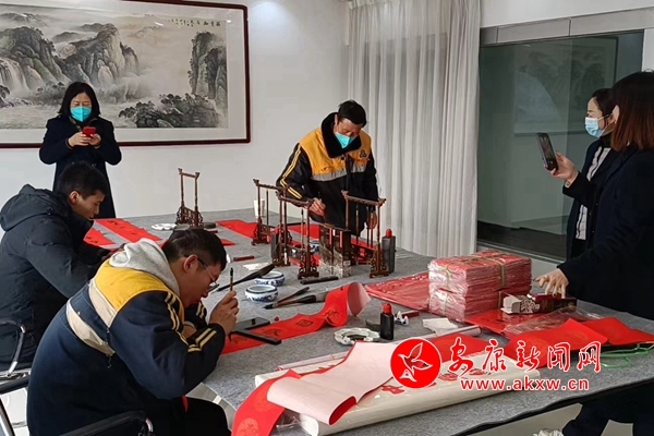 Wfj安康新聞網(wǎng) 圖為該站書法愛好者集中寫春聯(lián) Wfj安康新聞網(wǎng)