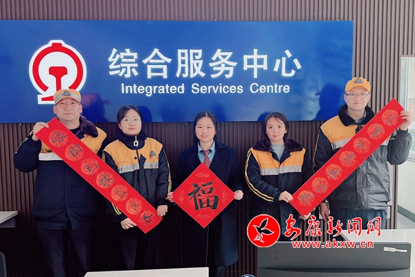 Wfj安康新聞網(wǎng) 圖為該站職工在貨運綜合服務(wù)中心向全國人民送上新春祝福Wfj安康新聞網(wǎng)