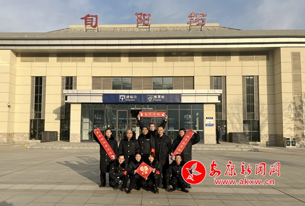 Wfj安康新聞網(wǎng) 圖為該站職工在旬陽站站前廣場向全國人民送上新春祝福Wfj安康新聞網(wǎng)