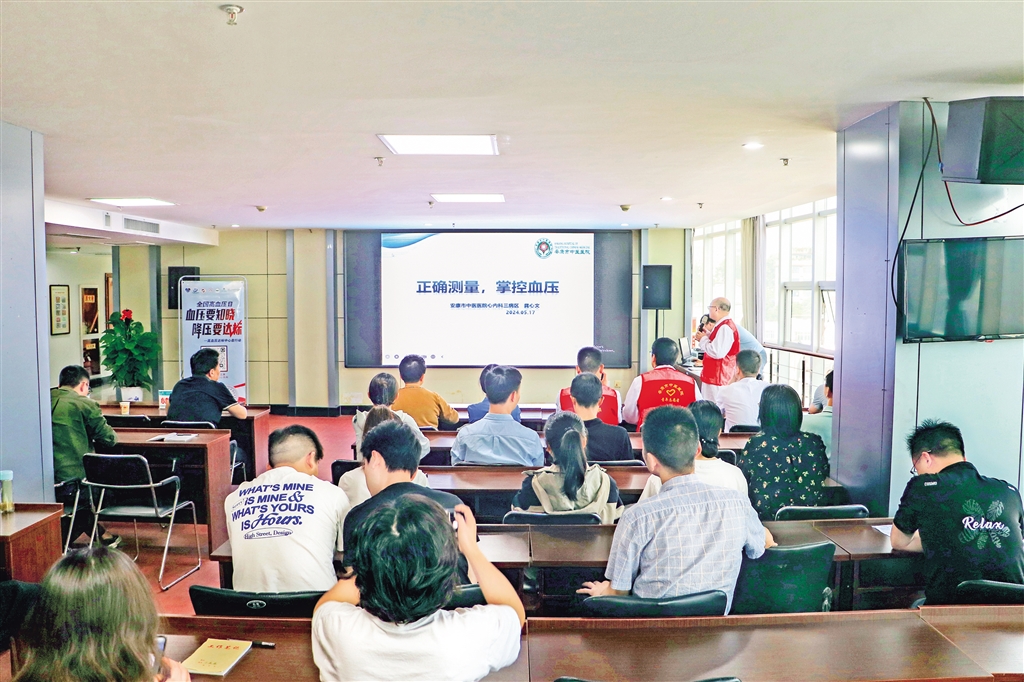 本網(wǎng)訊(記者 翟本榮/文 吳單/圖)5月17日是第20個(gè)世界高血壓日,當(dāng)天上午,安康日?qǐng)?bào)社邀請(qǐng)市中醫(yī)醫(yī)院高新分院相關(guān)專家,來單位開展“有效控制 健康長(zhǎng)壽”高血壓及康復(fù)醫(yī)療健康科普知識(shí)專題講座。報(bào)網(wǎng)全體干部職工70余人參加。