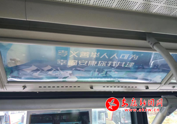 走進(jìn)安康城區(qū)7路公交車廂,印有“孝義善舉人人可為 幸福安康你我共建”等標(biāo)語(yǔ)映入眼簾,車廂內(nèi)的公益廣告宣傳氛圍濃厚,將孝義善舉潛移默化地浸潤(rùn)到乘客心底。