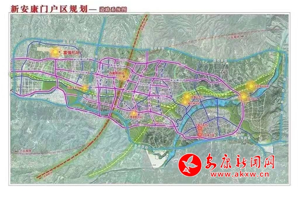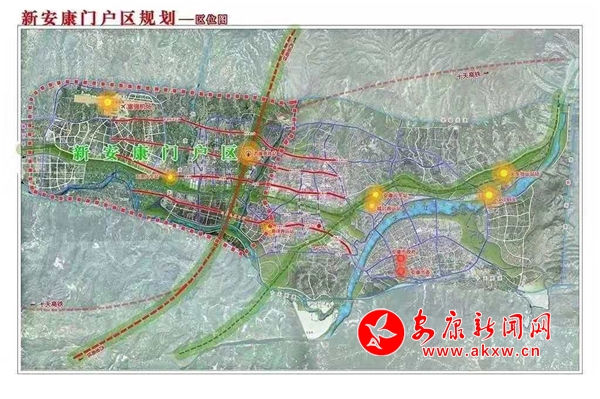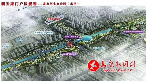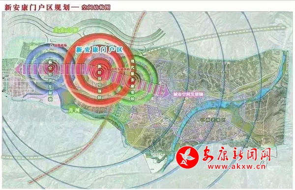 依據(jù)總體規(guī)劃,擬將安康高新區(qū)高新大道以西、北環(huán)快速干道以南、月河流域以北、寨河梁以東區(qū)域的60平方公里,規(guī)劃為新安康門戶區(qū)。在空間布局上,以高鐵安康西站為核心,以新時代大道、新安康大道、安康大道、創(chuàng)新路4條東西向城市主干道和高新大道、高新七路、高新十路、高新十二路、冉河西路、國賓大道6條南北向城市主干道為軸線,規(guī)劃布局新經(jīng)濟引領區(qū)、臨空經(jīng)濟區(qū)、新行政中心區(qū)、現(xiàn)代服務聚集區(qū)、安康特色產(chǎn)業(yè)區(qū),以此打造“五大”門戶。