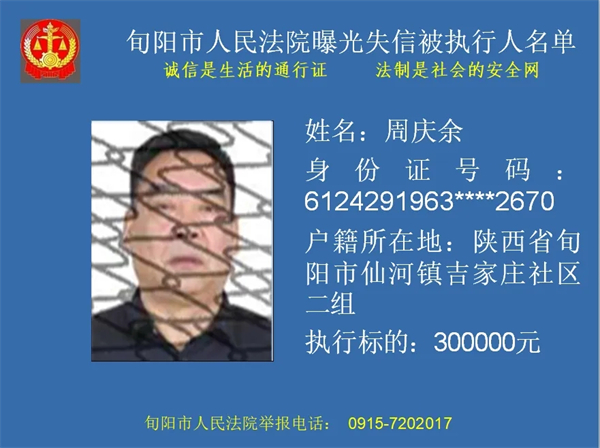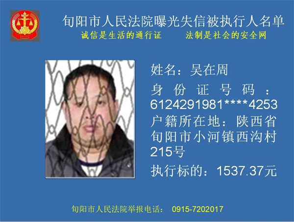 曝光失信 | 旬陽(yáng)法院發(fā)布2024年第一期失信被執(zhí)行人名單