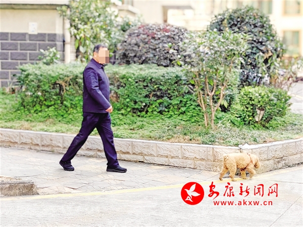 12月2日,有市民在某小區(qū)內(nèi)不牽繩遛狗。鄭時根 攝……