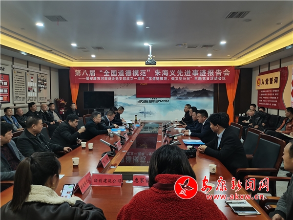 安康市河南商會黨支部書記趙士魁宣讀了關(guān)于號召商會全體黨員、全體會員積極向朱海義學習的《倡議書》,號召以朱海義為榜樣,用智慧和汗水,推動社會形成崇德向善、弘揚正氣的濃厚氛圍。