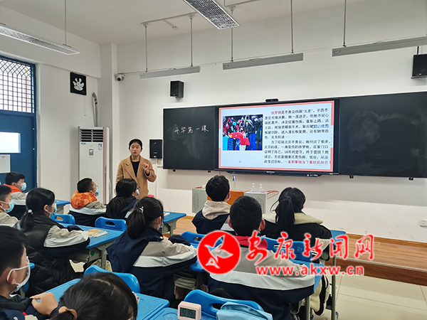 走進漢濱初中高新校區(qū)初一年級23班,語文教師劉麗以“‘虎’力全開,做最好的自己”為題,為學生們帶來了“開學第一課”。她以經(jīng)典詩歌《做最好的自己》為切入點,隨后通過課件展示了我國冰雪項目運動員谷愛凌、徐夢桃、金博洋等人在冬奧會取得的優(yōu)異成績,深入挖掘成績背后他們拼搏奮發(fā)的冬奧精神,引發(fā)了學生們熱烈響應,紛紛舉手表達自己的觀看冬奧會的感悟體會。