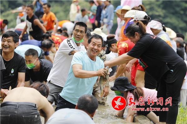 活動中的摸魚游戲更是妙趣橫生,群眾高高卷起褲管、手袖,有的甚至赤膊上陣,在渾水里搜索“目標”。參賽者們互相展示自己“渾水摸魚”的成果。