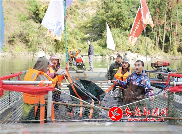 伴隨著生龍活虎的舞獅表演,上午9點(diǎn)30分,起魚儀式正式開始。戰(zhàn)鼓擂擂,響聲震天,起魚手大喊“1、2、3收網(wǎng)”,無數(shù)肥美鮮活的湖魚在網(wǎng)內(nèi)跳躍,引得在場游客陣陣歡呼。在萬眾矚目下,一條身長90厘米,重達(dá)20余斤的頭魚產(chǎn)生。在隨后的慈善拍賣活動(dòng)中,鎮(zhèn)坪縣鹽道酒店以32999元的價(jià)格奪得頭魚,拍賣所得款項(xiàng)將用于助學(xué)金捐贈(zèng)給貧困大學(xué)生。