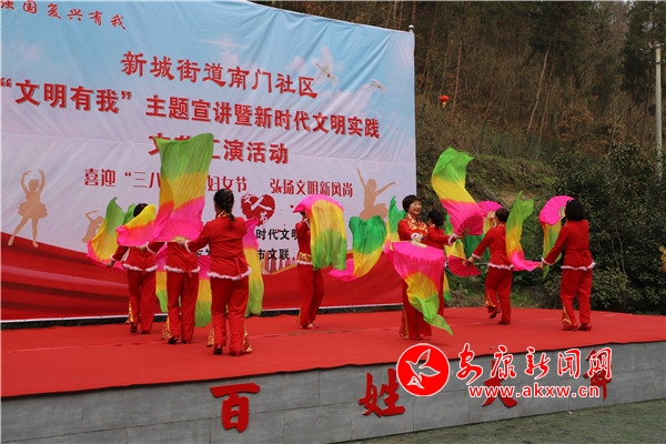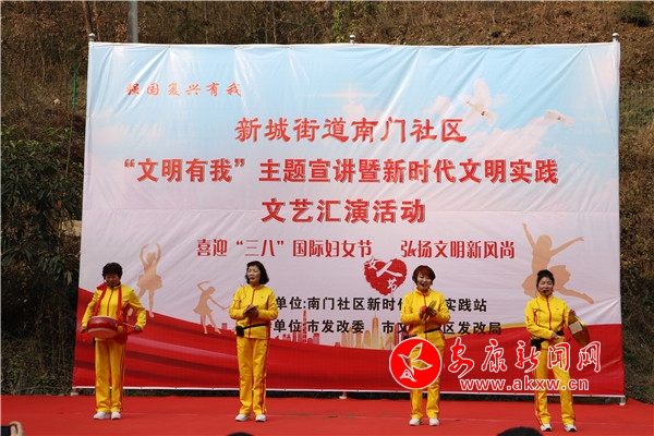 本網(wǎng)訊(記者 趙漪湉)為傳播文明理念,弘揚(yáng)時(shí)代新風(fēng),鞏固和提升創(chuàng)建全國(guó)文明城市工作成果,3月6日,市發(fā)改委、市文聯(lián)、漢濱區(qū)發(fā)改局、新城街道南門(mén)社區(qū)新時(shí)代文明實(shí)踐站聯(lián)合在南門(mén)社區(qū)成功舉辦“文明有我”主題宣講暨新時(shí)代文明實(shí)踐站文藝匯演。