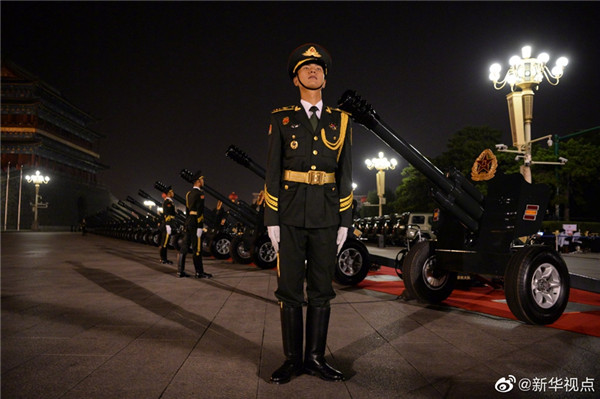 晨曦微露,裝點(diǎn)一新的東長(zhǎng)安街上,三軍列陣,鐵甲生輝,參加國(guó)慶70周年閱兵的全體受閱官兵集結(jié)完畢,雄姿英發(fā)、精神抖擻。由人民解放軍、武警部隊(duì)和民兵預(yù)備役部隊(duì)約15000名官兵、580臺(tái)(套)裝備組成的15個(gè)徒步方隊(duì)、32個(gè)裝備方隊(duì),沿東長(zhǎng)安街綿延向東約2公里;陸、海、空航空兵160余架戰(zhàn)機(jī),組成12個(gè)空中梯隊(duì),在北京周邊多個(gè)機(jī)場(chǎng)整裝待發(fā)。