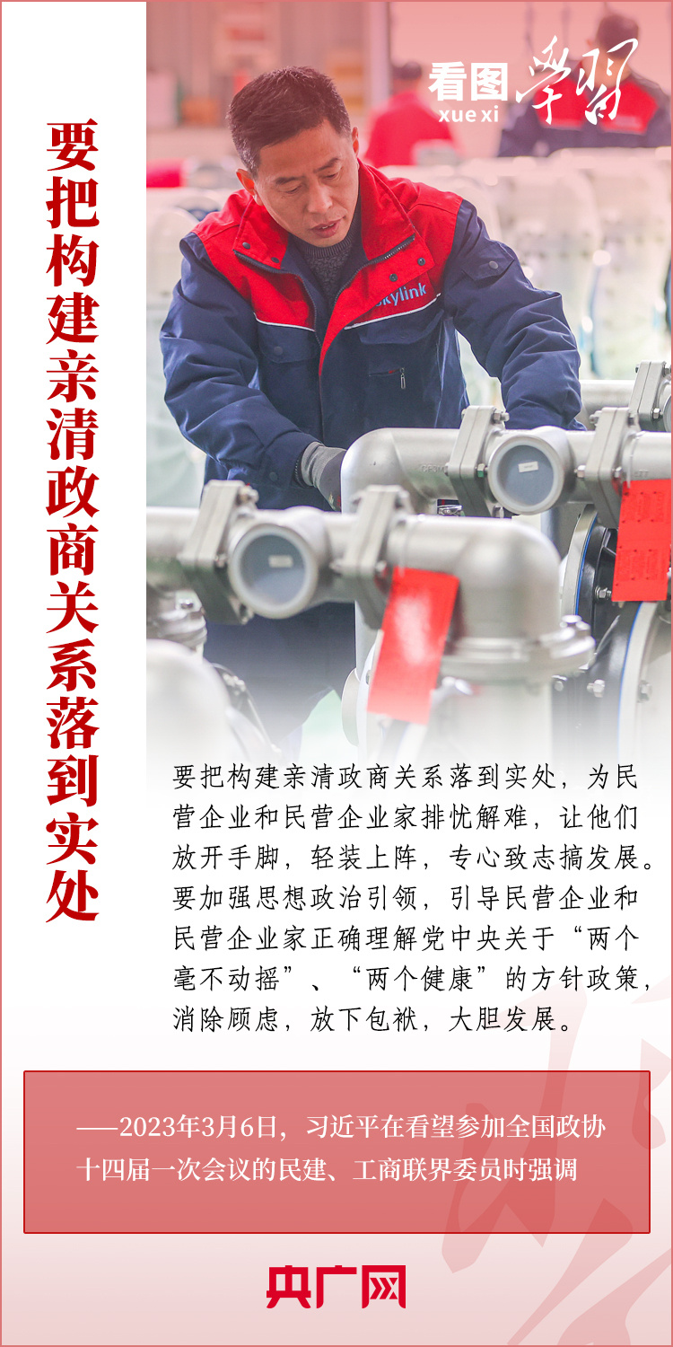 3月6日下午,習(xí)近平總書記看望參加全國政協(xié)十四屆一次會(huì)議的民建、工商聯(lián)界委員,并參加聯(lián)組會(huì),聽取意見和建議?倳洀(qiáng)調(diào),黨中央始終堅(jiān)持“兩個(gè)毫不動(dòng)搖”“三個(gè)沒有變”,始終把民營企業(yè)和民營企業(yè)家當(dāng)作自己人。要引導(dǎo)民營企業(yè)和民營企業(yè)家正確理解黨中央方針政策,增強(qiáng)信心、輕裝上陣、大膽發(fā)展,實(shí)現(xiàn)民營經(jīng)濟(jì)健康發(fā)展、高質(zhì)量發(fā)展。一起來學(xué)習(xí)!