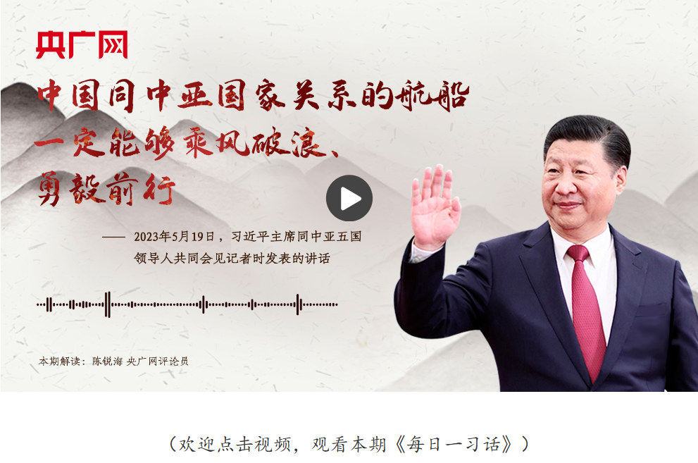 這段話出自2023年5月19日習(xí)近平主席同中亞五國領(lǐng)導(dǎo)人共同會見記者時發(fā)表的講話。