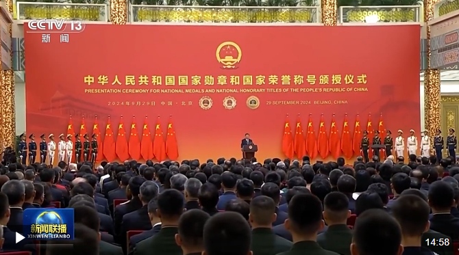 中華人民共和國國家勛章和國家榮譽(yù)稱號(hào)頒授儀式29日上午在北京人民大會(huì)堂金色大廳隆重舉行。中共中央總書記、國家主席、中央軍委主席習(xí)近平向國家勛章和國家榮譽(yù)稱號(hào)獲得者頒授勛章獎(jiǎng)?wù)虏l(fā)表重要講話。習(xí)近平強(qiáng)調(diào),偉大時(shí)代呼喚英雄、造就英雄。英雄輩出,黨和人民事業(yè)就會(huì)興旺發(fā)達(dá)、長盛不衰。各級(jí)黨委和政府要關(guān)心關(guān)愛英雄模范,推動(dòng)全社會(huì)尊崇英雄、學(xué)習(xí)英雄、爭做英雄。希望受到表彰的同志珍惜榮譽(yù)、再接再厲,爭取更大榮光。