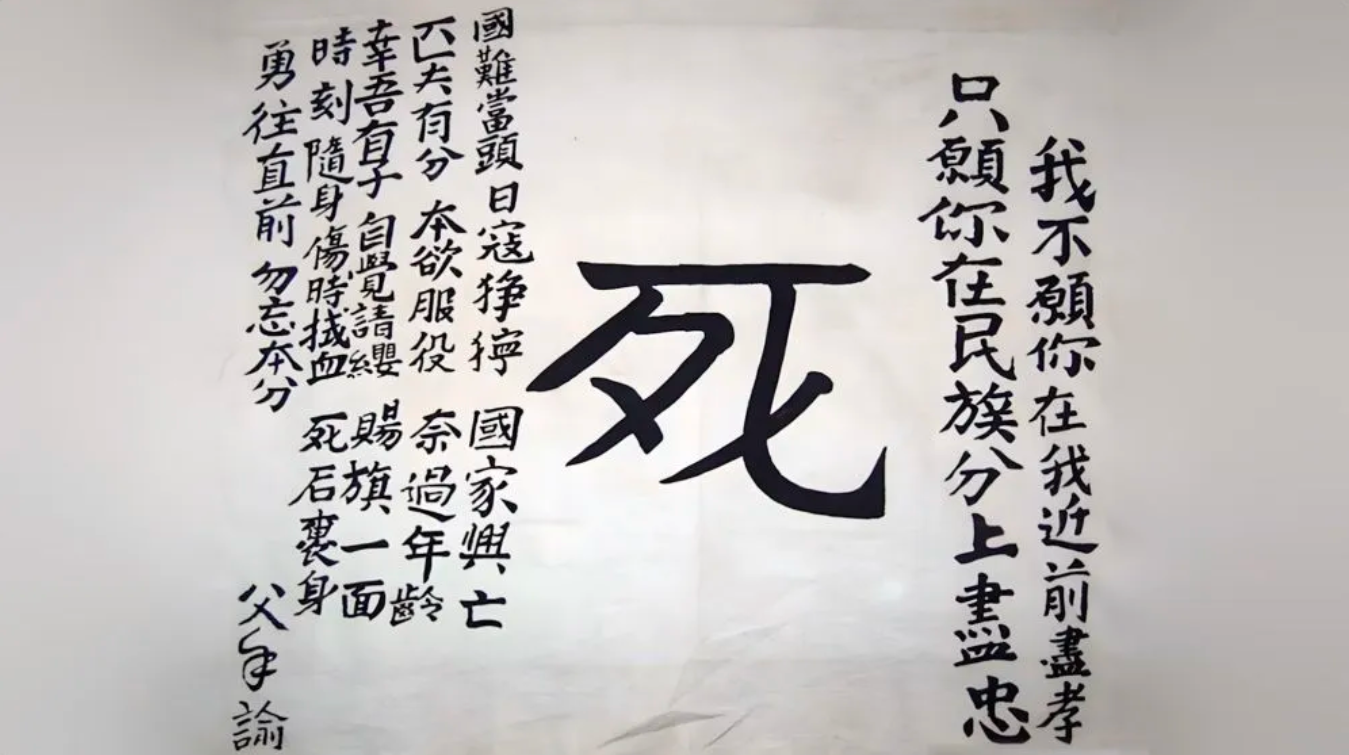 1937年9月,一位名叫王者成的中國(guó)父親把這面“死”字旗交給即將上戰(zhàn)場(chǎng)的兒子。RQY安康新聞網(wǎng)