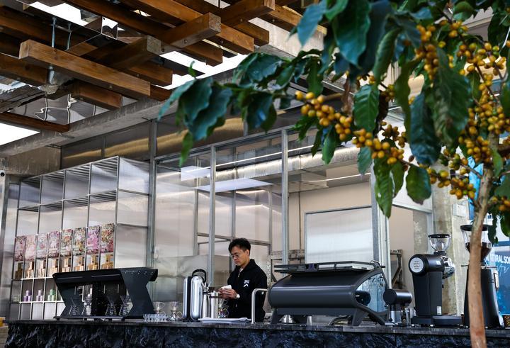 2025年12月10日,旅居云南的韓君瑋在位于昆明的南來(lái)盛咖啡店內(nèi)制作咖啡。韓君瑋自清華大學(xué)畢業(yè)后,已在咖啡行業(yè)耕耘十余年。2024年,他受聘成為云南一家老字號(hào)咖啡品牌的品牌總顧問(wèn),從此投身到云南咖啡的產(chǎn)品研發(fā)和品牌推廣工作中。一年多來(lái),他每月都會(huì)來(lái)到昆明,短則幾天,長(zhǎng)則數(shù)周,開(kāi)啟了一種“半旅居、半工作”的生活模式。“云南風(fēng)景優(yōu)美、氣候宜人,我很享受這樣的狀態(tài)。”韓君瑋說(shuō)。