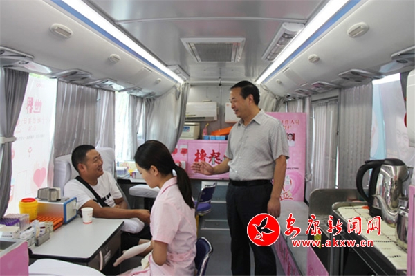 安康新聞網(wǎng)訊(通訊員 屈閔)“今天是7月25日,安康,晴,最高氣溫41℃,請(qǐng)大家盡量減少外出,做好防暑降溫措施,小心中暑!”主播甜美的嗓音從廣播里傳來(lái),提醒廣大市民又是一個(gè)高溫天,要注意防暑。但對(duì)于安康市中心血站的一線工作人員來(lái)說(shuō),這只是個(gè)普普通通的工作日,因?yàn)闊o(wú)論是酷暑還是嚴(yán)寒,我們的獻(xiàn)血車總會(huì)準(zhǔn)時(shí)出現(xiàn)在大家的視線里,從不缺席。這不,早上7點(diǎn)半,獻(xiàn)血車已經(jīng)?吭诹宋挥谀檄h(huán)路的喜盈門(mén)超市門(mén),等待愛(ài)心人士的到來(lái)。