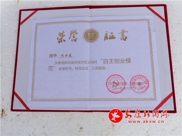 筆者從陳斌口中得知,2019年6月,代全花分別被安康高新區(qū)和五檔村黨支部、村委會(huì)授予“自強(qiáng)標(biāo)兵”和“自主創(chuàng)業(yè)模范”榮譽(yù)稱號(hào),去年一家成功實(shí)現(xiàn)了脫貧。