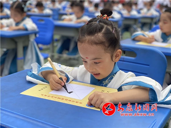 本網(wǎng)訊(通訊員 王宗濤)9月13日,孔子誕辰紀(jì)念日來臨之際,由安康市文化和旅游廣電局、安康市高新區(qū)教育體育局主辦,安康博物館、安康高新區(qū)第四小學(xué)承辦的以“喜迎二十大,啟蒙新未來”為主題的新生開筆禮儀式在高新四小操場隆重舉行,一年級(jí)340名新生體驗(yàn)傳統(tǒng)“開筆禮”,寫好人生第一撇。