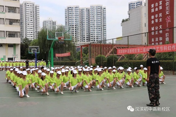 五彩斑斕的青春,絢爛這個不凡的七月。7月25日,同學們用滿滿的激情與活力迎來了漢濱初中高新校區(qū)2019級新生入學培訓活動的第四天。