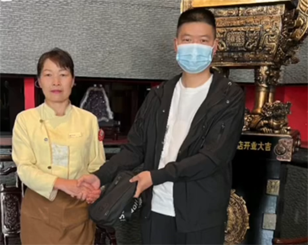 挎包“完璧歸趙”要從4月30日說起。當(dāng)天,熊先生吃飯后,匆匆離開,隨身攜帶的挎包遺失在安康蓮花餐飲店。挎包內(nèi)有1萬余元現(xiàn)金,還有駕照、身份證、銀行卡等重要證件。安康蓮花餐飲店服務(wù)員趙廣勤和保潔員李佰花發(fā)現(xiàn)后,第一時間毫不猶豫地放在餐館的前臺。