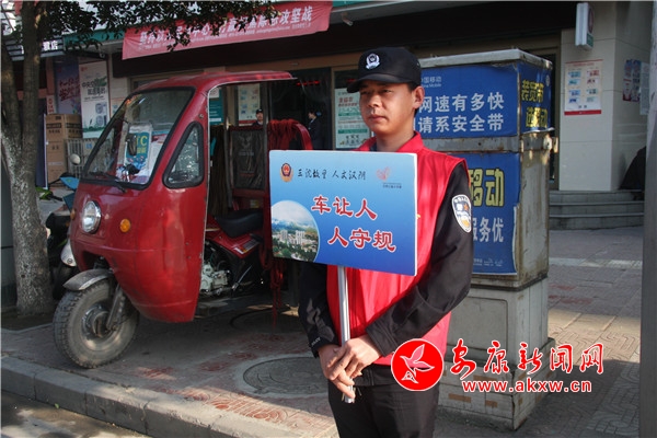 10月30日,該縣公安局20余名志愿者們身穿紅馬甲,手持小紅旗來到無交通信號(hào)燈北城街與解放街十字路口,通過揮動(dòng)小紅旗、文明勸阻等方式,引導(dǎo)過往行人過馬路走斑馬線,提醒過往車輛減速慢行、禮讓行人,幫助老年人、到小孩的婦女、兒童、殘疾人等有困難的群眾安全過馬路,倡導(dǎo)“機(jī)動(dòng)車禮讓斑馬線,機(jī)動(dòng)車按序排隊(duì)通行,機(jī)動(dòng)車有序停放,文明使用車燈,行人、非機(jī)動(dòng)車各行其道,行人、非機(jī)動(dòng)車過街遵守信號(hào)”六大文明交通行為。