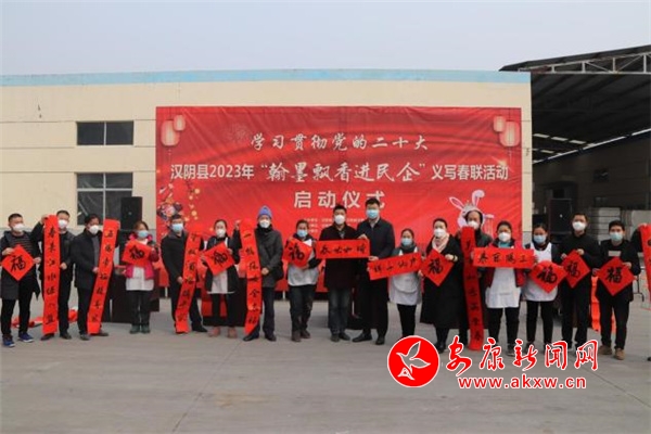 本網(wǎng)訊(通訊員 唐成明)寅虎辭歲萬象新,卯兔迎福報春來。為認(rèn)真學(xué)習(xí)貫徹落實黨的二十大精神,進(jìn)一步弘揚傳承中華民族的優(yōu)秀傳統(tǒng)文化,大力營造全縣上下關(guān)心支持民營經(jīng)濟(jì)發(fā)展的濃厚氛圍。1月12日上午,漢陰縣工商聯(lián)聯(lián)合縣文聯(lián)舉行“翰墨飄香進(jìn)民企”義寫春聯(lián)活動啟動儀式。