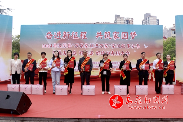 本網(wǎng)訊(通訊員 賀珍珍 熊樂 張欣欣)為進(jìn)一步弘揚(yáng)家訓(xùn)文化,傳承優(yōu)良家風(fēng),5月9日,由漢陰縣紀(jì)委監(jiān)委、縣委宣傳部主辦,漢陰縣婦聯(lián)、縣文聯(lián)承辦的“奮進(jìn)新征程 共筑中國(guó)夢(mèng)”——“萬(wàn)條家訓(xùn)進(jìn)萬(wàn)家”家風(fēng)故事分享暨最美家庭、好婆婆、好媳婦表?yè)P(yáng)大會(huì)在漢陰縣鳳凰廣場(chǎng)舉行。