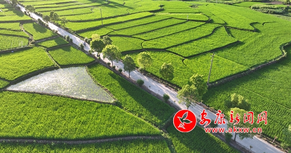 盛夏時(shí)節(jié),漢陰連片的水稻長(zhǎng)勢(shì)喜人,綠油油的稻田與連綿起伏的青山、錯(cuò)落有致的民居、縱橫交錯(cuò)的田園綠道交相輝映,讓人心曠神怡。