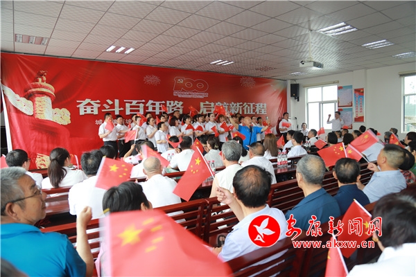 慶;顒幼詈,全場黨員和群眾揮動手中的五星紅旗,一起合唱《我和我的祖國》表達了對偉大祖國的無限熱愛之情,活動在歡快的音樂節(jié)奏中結(jié)束。