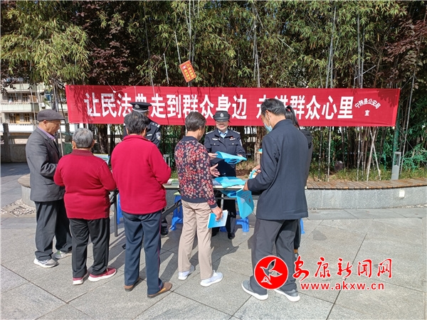 在縣政府廣場活動現(xiàn)場,通過懸掛橫幅、發(fā)放各類宣傳書籍、法治宣傳品等普法資料、設(shè)立法律咨詢服務(wù)臺等形式向群眾宣傳《中華人民共和國民法典》《信訪工作條例》和《反電信網(wǎng)絡(luò)詐騙法》。民警結(jié)合群眾普遍關(guān)心的婚姻家庭、遺囑繼承、勞務(wù)糾紛、高空拋物、財產(chǎn)保護、隱私保護等熱點難點法律問題,借助群眾身邊日常小事、糾紛案例,進行了耐心講解和交流,讓法律真正深入人心、為民所用,解民憂、紓民困。