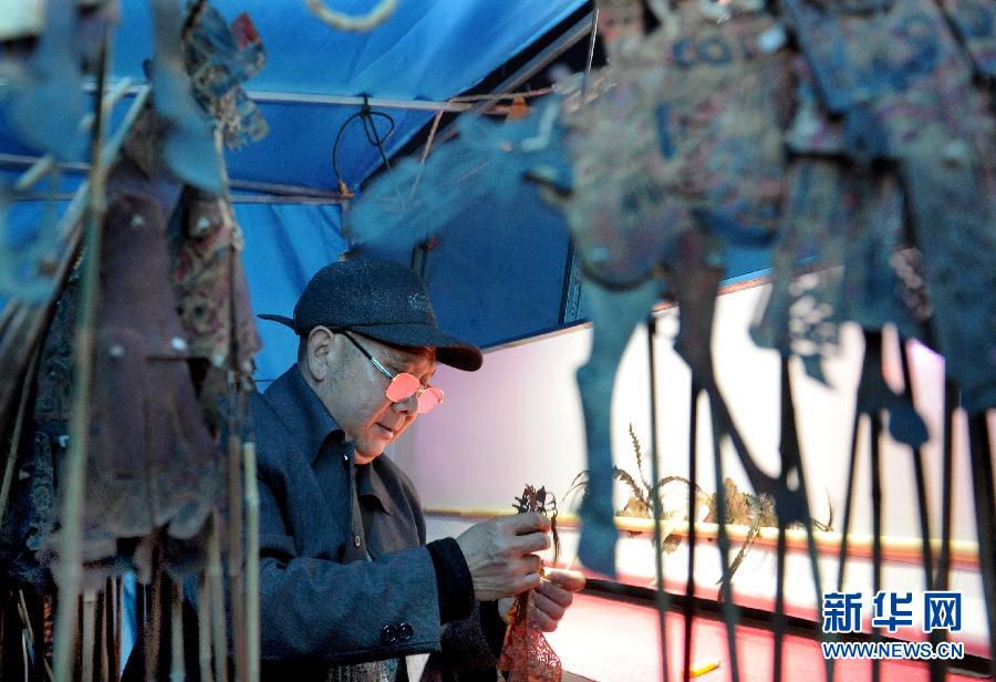 3月15日,平利縣國家非遺文化傳承人吳承權(quán)正在準(zhǔn)備道具為群眾表演弦子腔。在巴山深處的陜西平利縣,活躍著一批皮影戲弦子腔藝人。他們常常利用休息日走上街頭,……