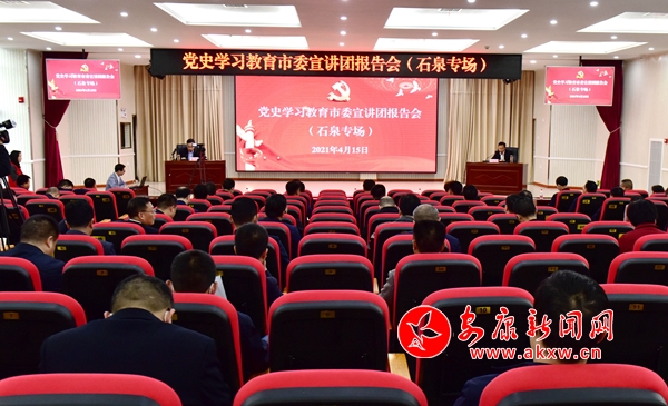 本網訊(通訊員 譚文昌)4月15日下午,黨史學習教育市委宣講團報告會在石泉舉行。市委宣講團成員、市委黨史研究室主任吳世珍作宣講報告。石泉縣全體在家縣級領導,各鎮(zhèn)黨委書記,縣委和縣級國家機關各部門、各人民團體、駐石各單位負責人,縣委宣傳部、縣委黨校、縣委黨史學習教育領導小組辦公室全體干部和縣委宣講團全體成員參加會議。