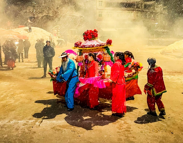 所幸的是,近幾年,李氏花燈得到了雙河鎮(zhèn)政府的大力支持。每年臘月,雙河鎮(zhèn)政府都會號召李忠寶父子和一批愛好花燈文化的村民,及早返鄉(xiāng)籌備花燈游演活動。這對李忠寶來說,既是一份支持,也是一份責(zé)任。他知道,政府希望通過這樣的活動,實現(xiàn)優(yōu)秀傳統(tǒng)文化的傳承與創(chuàng)新,帶動鄉(xiāng)村旅游經(jīng)濟(jì)發(fā)展。同樣也希望,借著這個機(jī)會,讓更多的人了解李氏花燈,愛上這門古老的藝術(shù)。