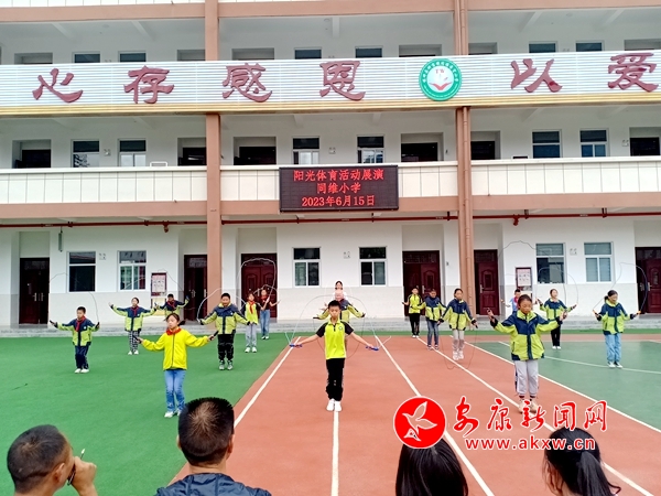 據(jù)悉,近年來,為積極落實“雙減”和五項管理工作、為學(xué)生減負(fù),同維希望小學(xué)根據(jù)學(xué)生學(xué)段特點,因地制宜、巧妙設(shè)計,調(diào)研學(xué)生興趣愛好,打造出以“籃球操”“一分鐘原地跳繩”特色的“陽光大課間”。將體育元素與藝術(shù)特色有機(jī)融合,實現(xiàn)了健身和游戲相統(tǒng)一,讓同學(xué)們在提升體育技能的同時,感受到運動的快樂。