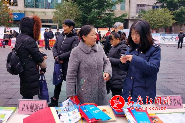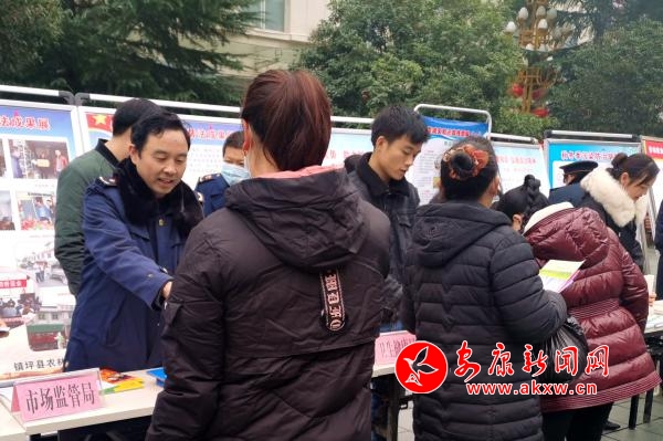 啟動儀式結(jié)束后,32個相關(guān)部門圍繞“弘揚憲法精神,建設(shè)法治鎮(zhèn)坪”的宣傳主題,按照統(tǒng)一安排,在鎮(zhèn)坪縣中心廣場集中開展宣傳活動。在做好憲法宣傳的同時,鎮(zhèn)坪縣市場監(jiān)管局結(jié)合自身職能職責,通過設(shè)立宣傳咨詢臺、懸掛標語、擺放展板、發(fā)放宣傳資料等方式,開展了市場監(jiān)管系統(tǒng)法律法規(guī)的宣傳和咨詢活動,大力宣傳《食品安全法》《藥品管理法》《消費者權(quán)益保護法》《特種設(shè)備安全法》等法律法規(guī)知識,積極向廣大群眾發(fā)放宣傳資料,熱情耐心地向咨詢?nèi)罕娦v食品藥品安全、偽劣產(chǎn)品鑒別等法律法規(guī)知識,并告知群眾一些消費注意事項,提高群眾的識假辨假能力和依法維權(quán)意識。