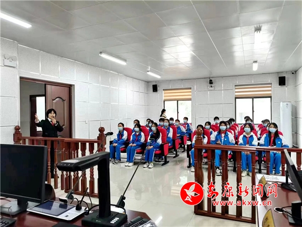 本網(wǎng)訊(通訊員 唐燕)5月25日,新搬遷的蒿坪中心人民法庭迎來(lái)了第一批來(lái)參觀的“小客人”——蒿坪中學(xué)初二年級(jí)學(xué)生,他們著裝整齊,朝氣蓬勃,在蒿坪法庭庭長(zhǎng)的引導(dǎo)下,參觀了訴訟服務(wù)中心、審判庭等場(chǎng)所,法官細(xì)致介紹了審判庭的設(shè)置、法徽與法袍的含義、法槌的來(lái)歷,以及現(xiàn)有的科技設(shè)備,結(jié)合具體案例講解了《民法典》中與未成年切身相關(guān)的法律規(guī)定,同學(xué)們?nèi)探蚪蛴形兜芈犞,時(shí)不時(shí)用筆詳細(xì)地做著筆記,對(duì)審判庭內(nèi)的一切既興奮又好奇。