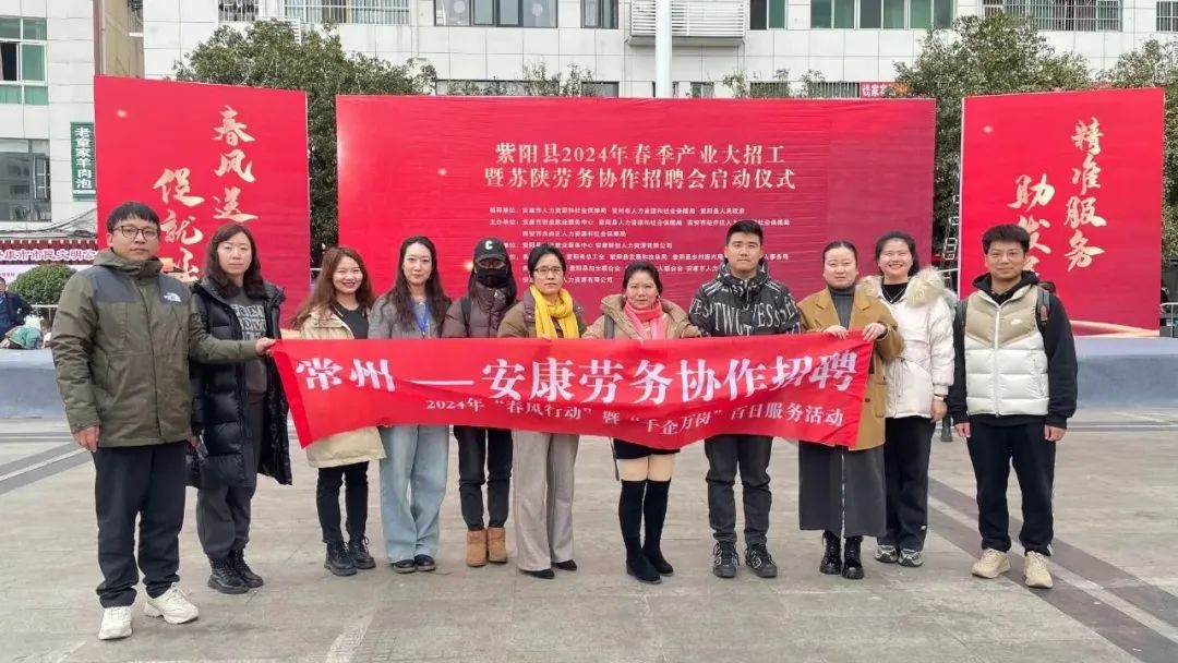 2月18日一早,陜西省安康市“紫陽縣2024年春季產業(yè)大招工暨蘇陜勞務協(xié)作招聘會啟動儀式”在紫陽廣場舉行。常州市江蘇星源新材料科技有限公司、常州市凱迪電器股份有限公司等10家重點企業(yè)在現(xiàn)場設攤招聘,合適的崗位、優(yōu)厚的福利待遇吸引了當?shù)厍舐氄哳l頻駐足,現(xiàn)場發(fā)放宣傳資料500余份,近200人與企業(yè)達成初步就業(yè)意向。這也是新春后常州市組織的首次勞務協(xié)作招聘。